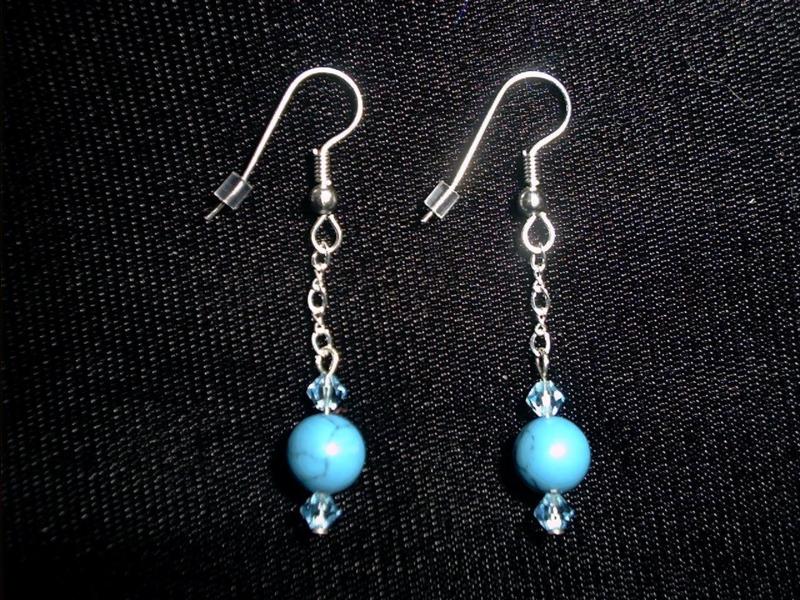 Turquoise with Pale Blue Austrian Crystals in Sterling